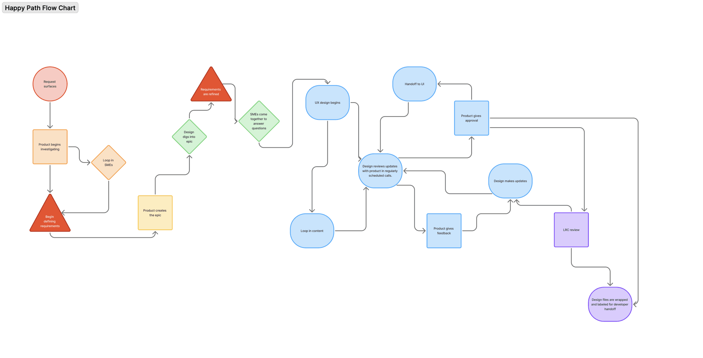 Design requirements received are often incomplete or are provided late in the workflow. As a result, the design team either delays the work or begins with limited context, which can ultimately result in delays or rework. Our goal is to collaborate with the Product team to figure out how we can reduce the overall delivery timelines by exploring ways to: